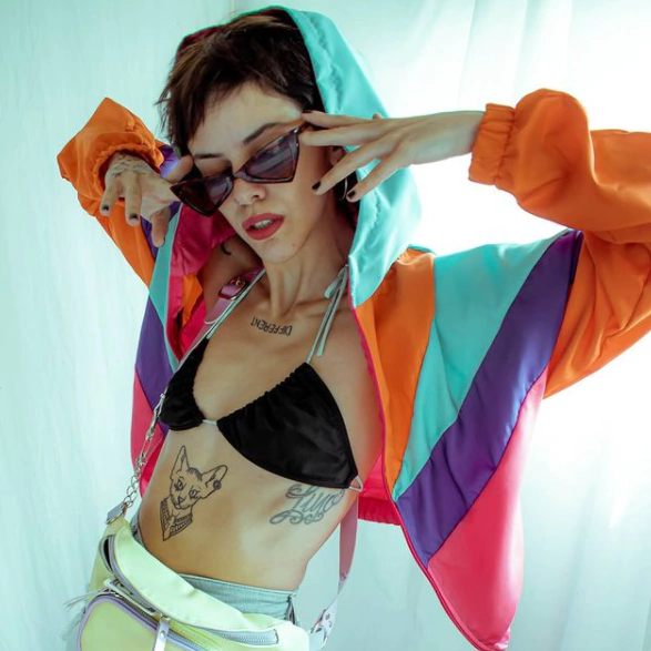 Campera de microfibra en color Naranja, Celeste, Violeta y Rosa